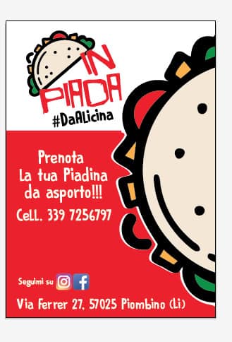Piadineria artigianale, nel centro di Piombino. Piadine classiche, integrali o multicereali senza strutto.